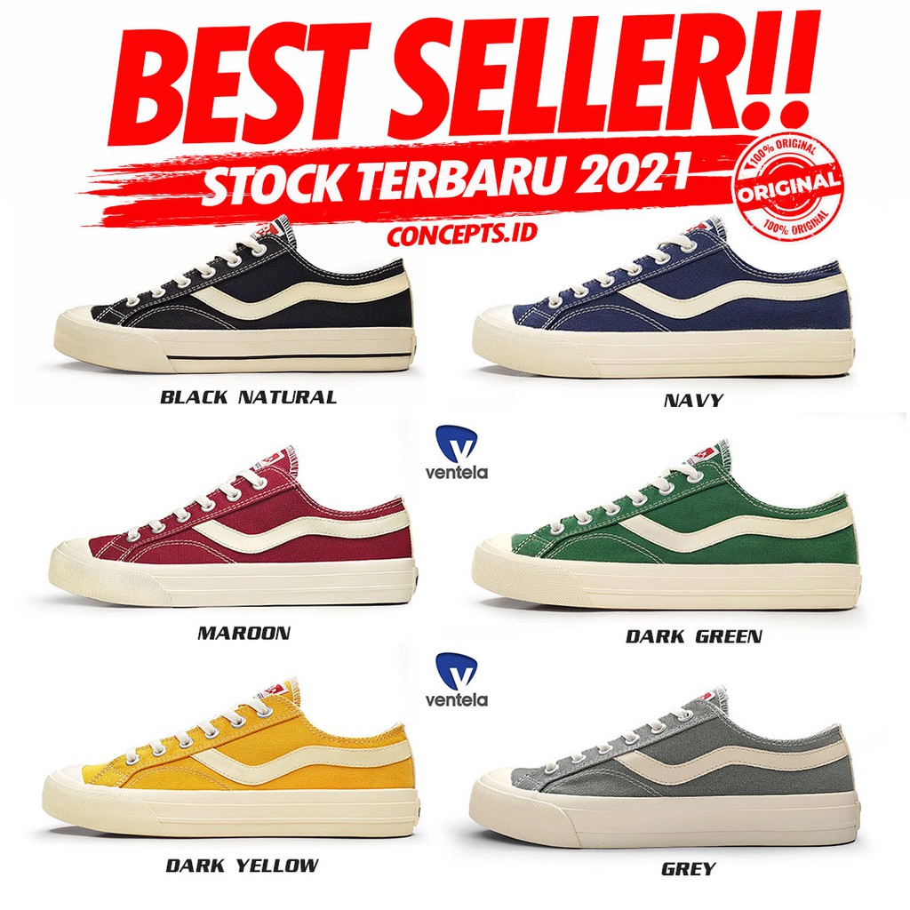 Sepatu Ventela Public Low Black Natural / Dark Yellow / Dark Green / Navy / Grey / Maroon / Oreo