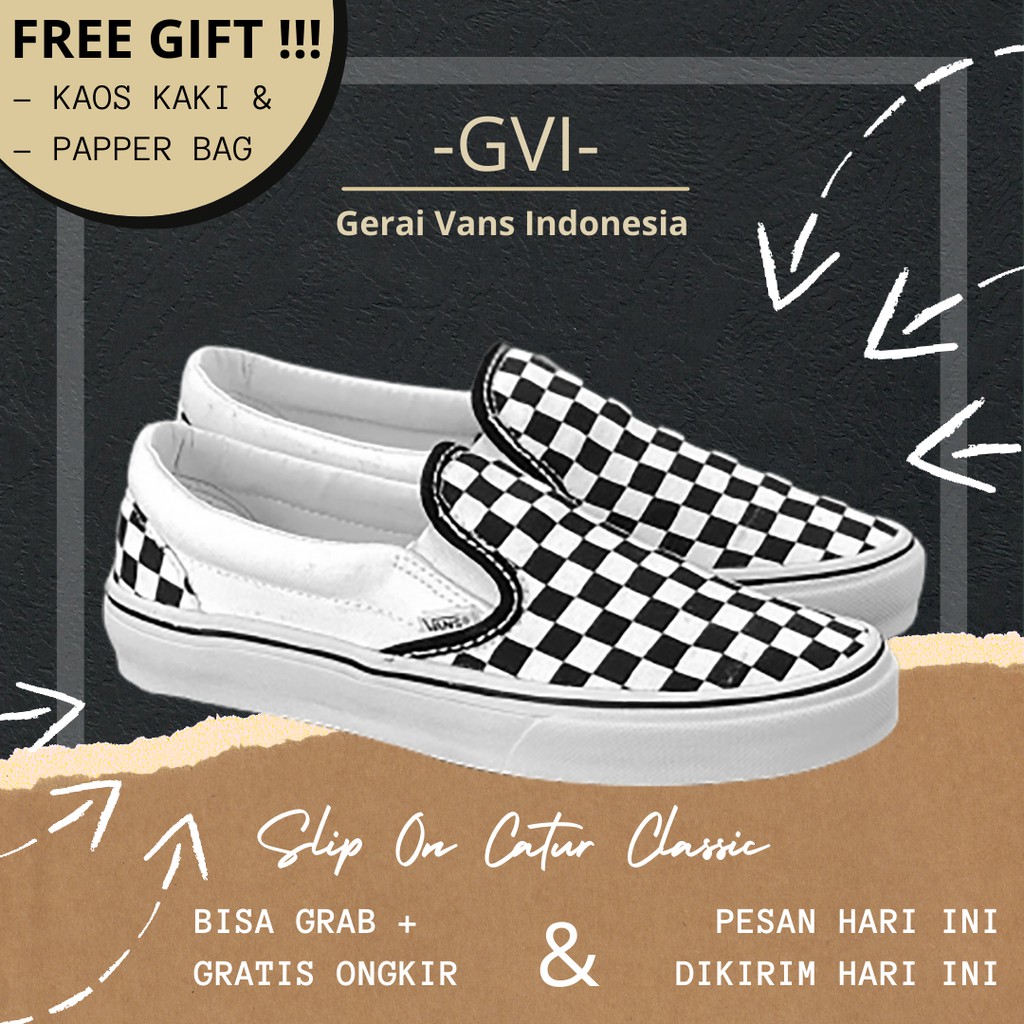 (GRATISSS!!!) VANS SLIP ON CLASSIC CHECKERBOARD BLACK WHITE WAFFLE DT PREMIUM BNIB