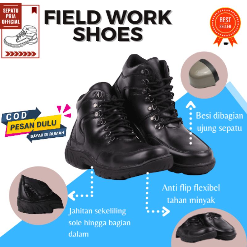 Sepatu Safety Motor Turing Spatu Sapety Pria Sapatu Sefety Laki Laki Sepatoe Kerja Ujung Besi Hitam