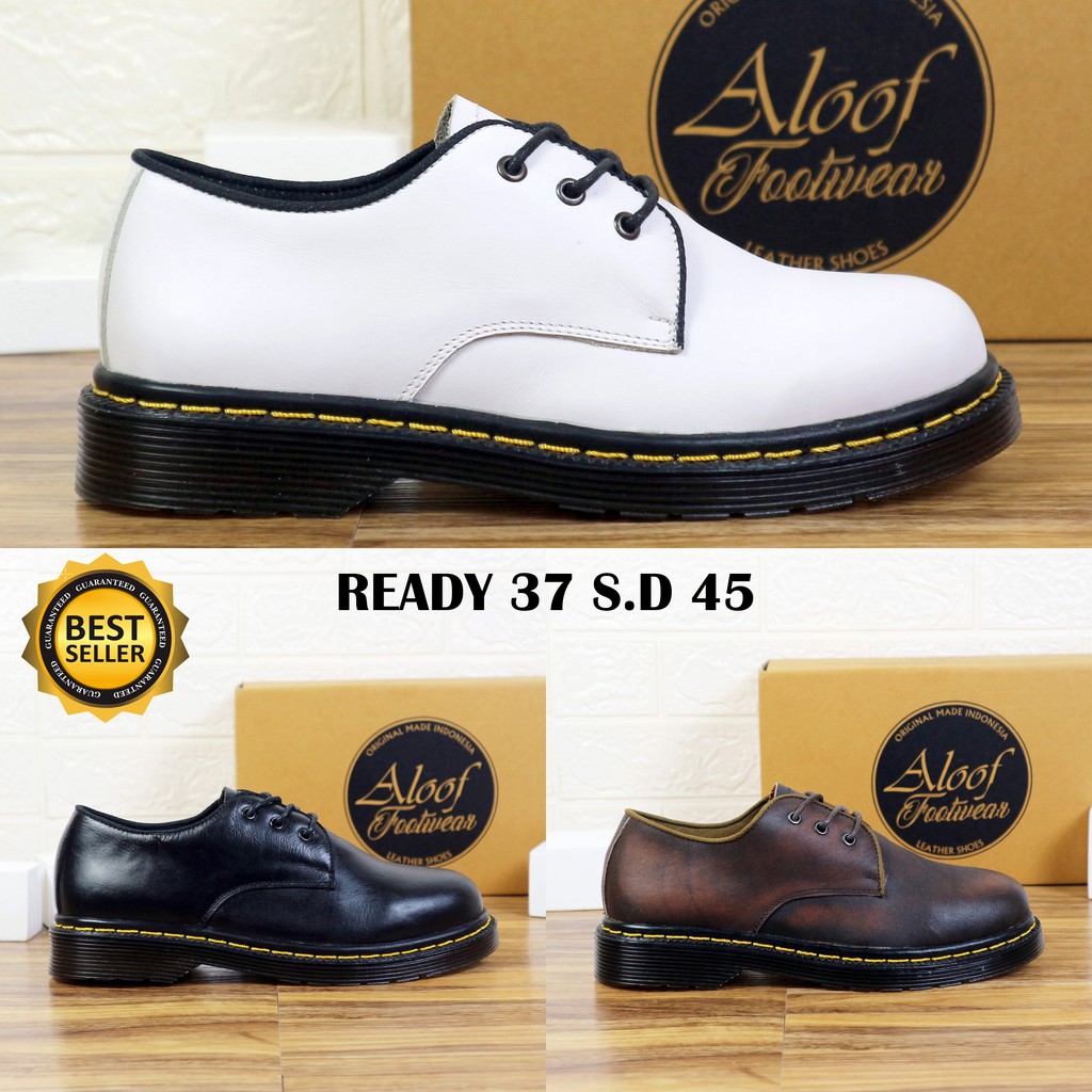 37-45 Aloof Delow - Sepatu Formal Unisex Kulit Asli Model Docmart 3 Hole Pria Wanita